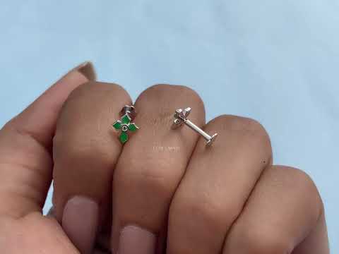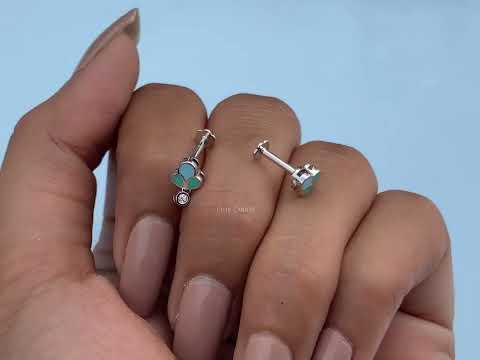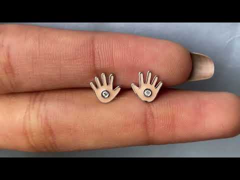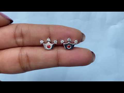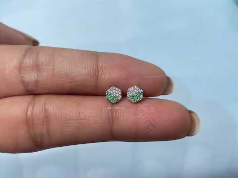 Diamond And Gemstone Pave Set Hexagon Baby Stud