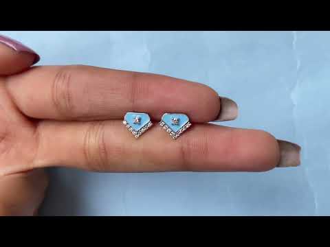 Diamond Shape Sky Blue Enamel Earrings For Toddler