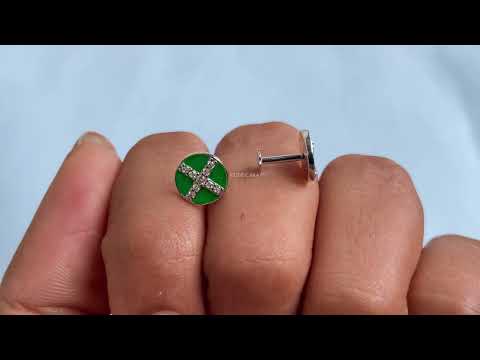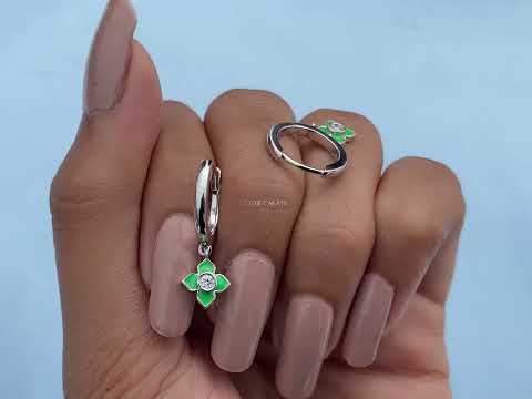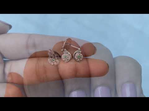 Green Gemstone Round Cut 3 Leaf Clover Earrings