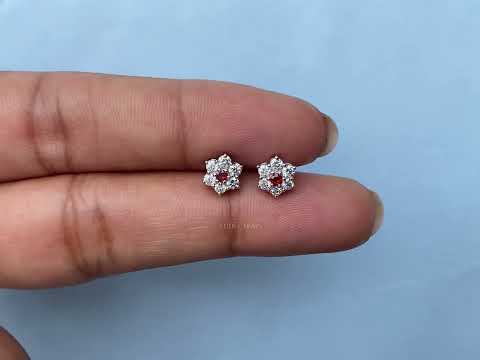 Minimalist Gemstone And Diamond Flower Stud Earring