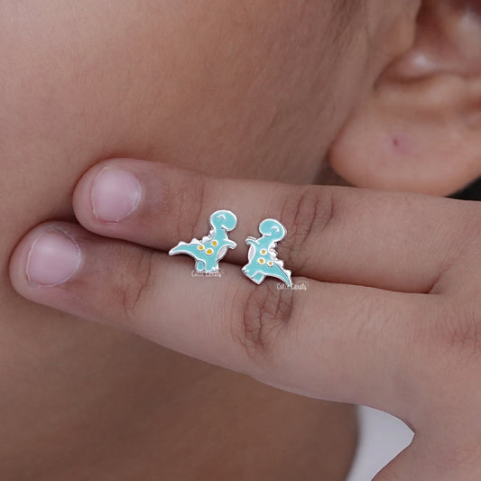 Sterling Silver Enamel Dinosaur Stud Earrings