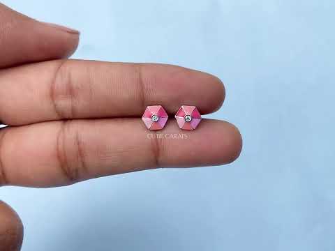 Pink Enamel Hexagon Shape Earrings