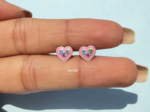 Heart Enamel Stud Earrings & Pendant Combo Set
