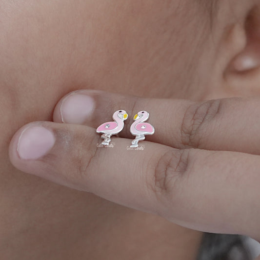 Flamingo Enamel Stud Earrings with Simulated Diamond
