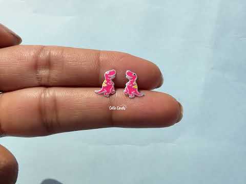 Sterling Silver Enamel Dinosaur Stud Earrings