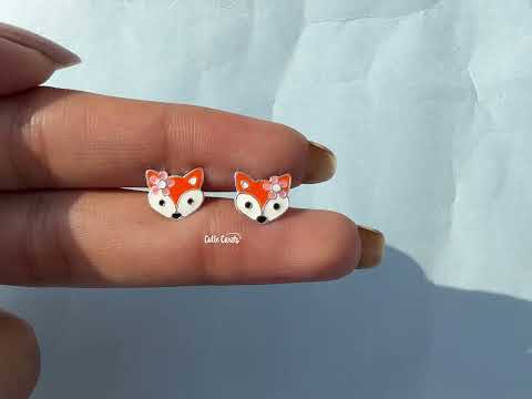 Sterling Silver Enamel Fox Stud Earrings for Kids