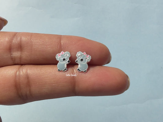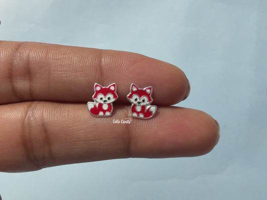Sterling Silver Enamel Fox Stud Earrings for Kids