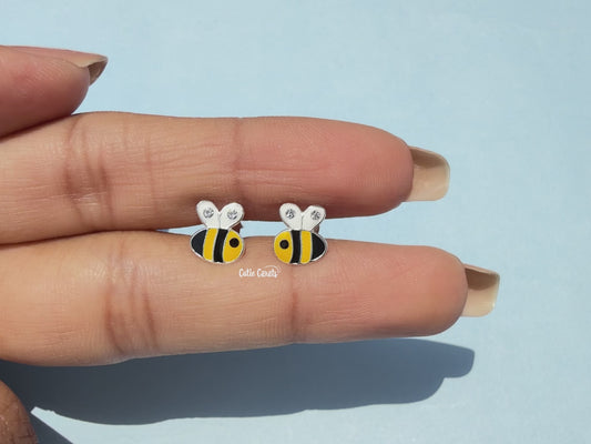 Simulated Diamond Honey Bee Enamel Stud Earrings
