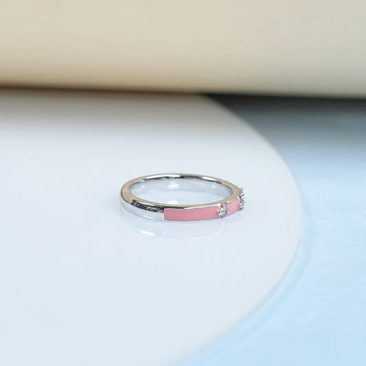 Baby Pink Enamel And Diamond Flush Set Ring